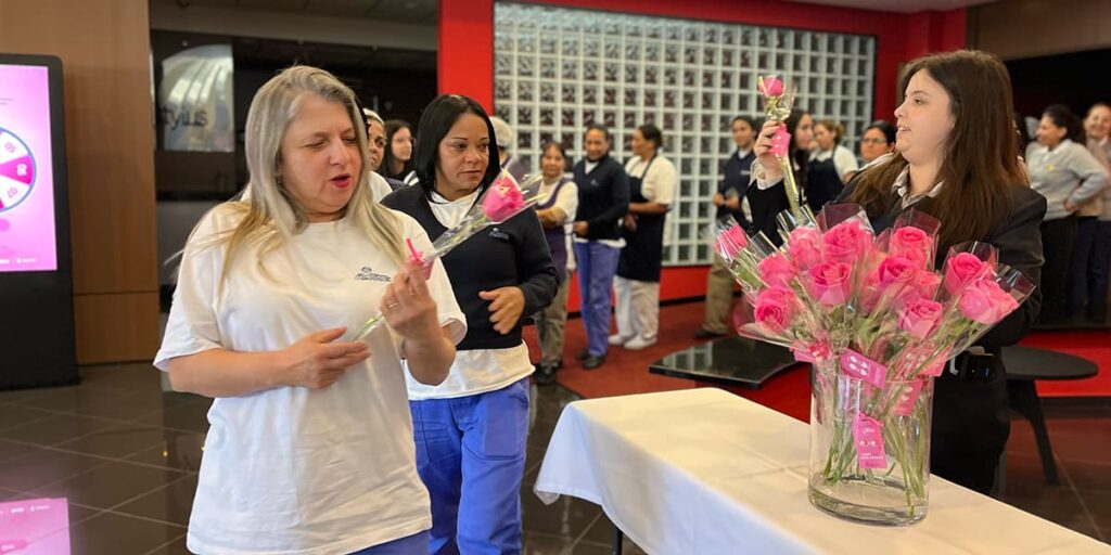Ao final do encontro, cada colaboradora recebeu uma rosa, acompanhada de um cartão com orientações sobre o autoexame e dicas de prevenção, além de um par de brincos, um gesto simbólico de carinho do Grupo Masipack.